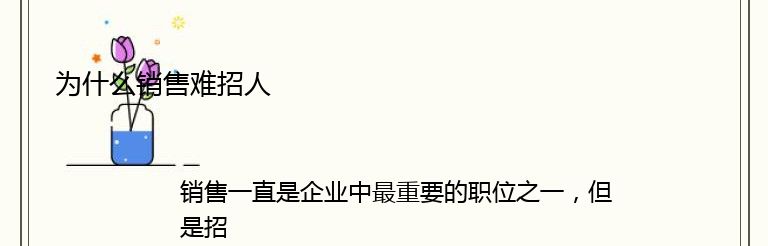 销售一直是企业中最重要的职位之一,但是招聘销售人员却一直是企业面临的难题之一。为什么销售难招人?以下是一些可能的原因: