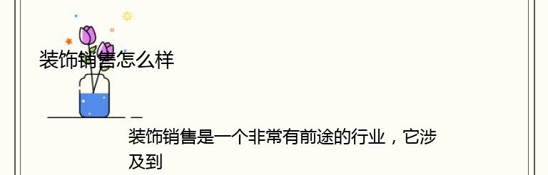 总之,装饰销售是一个非常有前途的行业,它需要销售人员具备一定的专业知识和技能,能够为客户提供周到的服务。如果你对这个行业感兴趣,不妨考虑加入其中,为人们的生活环境和生活品质做出贡献。