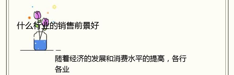 总之,随着社会的不断发展和人们需求的不断增长,各行各业的销售前景都在不断地变化。然而,互联网、医疗保健、环保等行业的销售前景一直都非常广阔,这些行业不仅有着广阔的市场,而且还有着不断增长的需求。