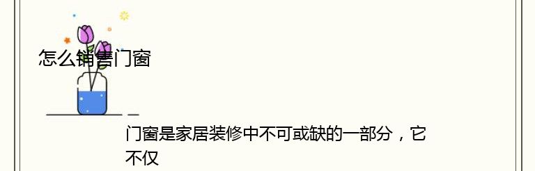 总之,销售门窗需要具备专业知识、了解客户需求、提供优质的产品和合理的价格等方面的技巧。只有这样,才能够成功地销售门窗,赢得客户的信任和支持。