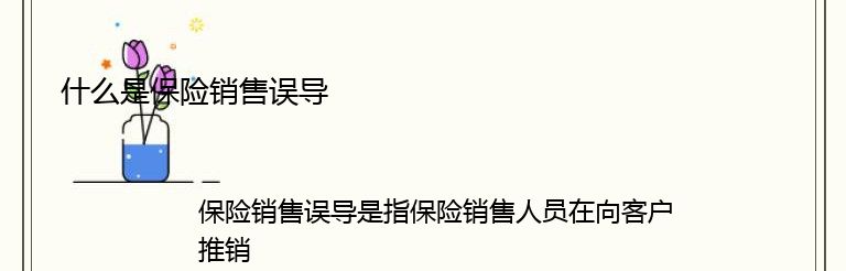 保险销售误导是指保险销售人员在向客户推销保险产品时,使用虚假宣传、夸大保险产品的保障能力、隐瞒重要信息等手段,误导客户购买保险产品的行为。