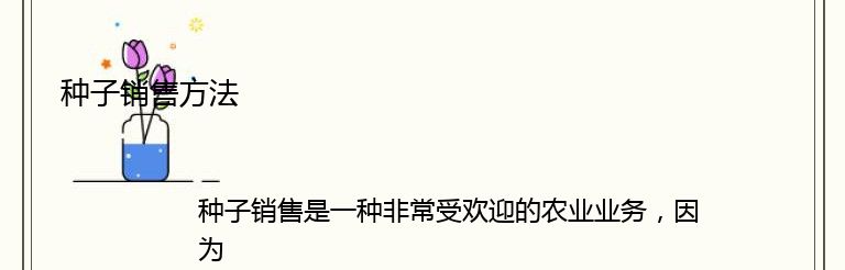 总之,种子销售是一项非常重要的业务,可以帮助农民获得高质量的种子,从而提高他们的农作物产量。无论是在线商店、农业展览和市场还是邮购,种子销售商都可以通过不同的销售方法来满足不同顾客的需求。