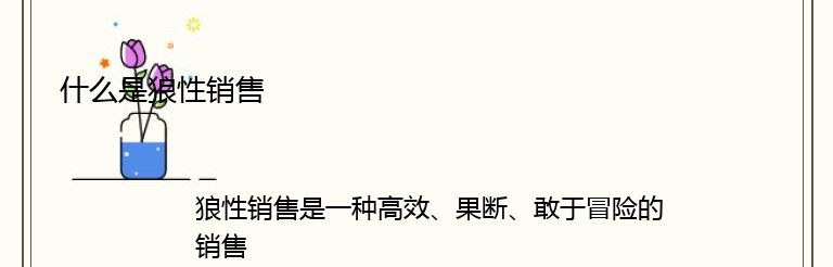 狼性销售是一种高效、果断、敢于冒险的销售方式。它强调的是销售人员的自信、决心和毅力,以及对客户需求的深刻理解和把握。