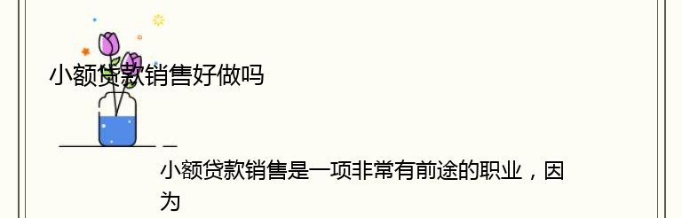 小额贷款销售是一项非常有前途的职业,因为随着社会经济的发展,越来越多的人需要贷款来满足他们的生活需求。而小额贷款销售正是为这些人提供服务的职业。