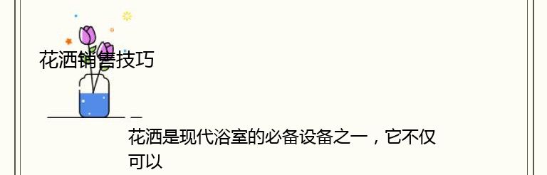 总之,销售花洒需要综合考虑客户的需求、展示花洒的功能和特点、提供专业的建议和服务以及合理的价格。只有这样,才能让客户满意并促进销售。