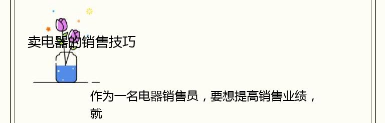 作为一名电器销售员,要想提高销售业绩,就需要掌握一些销售技巧。以下是一些常用的销售技巧: