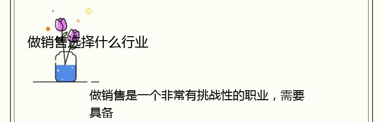 做销售是一个非常有挑战性的职业,需要具备一定的专业知识和技能。选择什么行业做销售也是非常重要的,因为不同的行业有不同的市场需求和竞争环境。