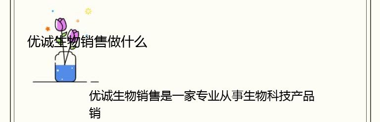 优诚生物销售是一家专业从事生物科技产品销售的公司。我们致力于为客户提供高质量、高效率、高性价比的生物科技产品和服务。