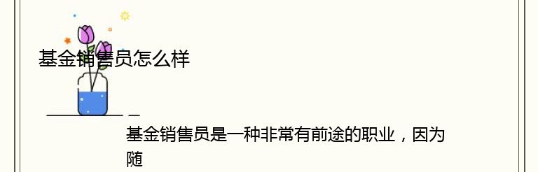总之,作为一名基金销售员,需要具备良好的沟通能力、一定的金融知识、良好的服务意识和一定的市场营销能力,才能够胜任这个职业,并取得良好的业绩。