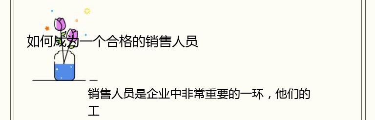 总之,成为一个合格的销售人员需要具备多方面的能力,需要不断学习和提升自己的能力,才能够在激烈的市场竞争中脱颖而出。