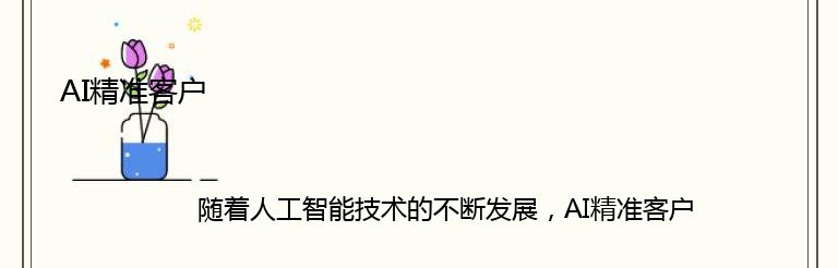 随着人工智能技术的不断发展,AI精准客户已经成为了现代营销的重要手段之一。AI精准客户是指通过人工智能技术对客户进行深度分析,从而实现精准营销的一种方式。