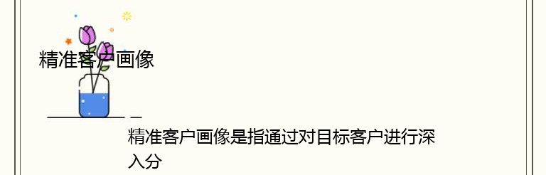 总之,精准客户画像是企业进行市场营销和销售活动的重要工具,通过深入了解目标客户的需求、兴趣、行为等方面的信息,可以更好地满足客户需求,提高销售效率和市场竞争力。