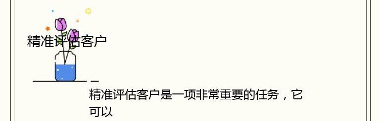 总之,精准评估客户是企业成功的关键之一。通过收集和分析客户数据,制定个性化的营销策略,企业可以更好地满足客户的需求,提高客户满意度和忠诚度,从而实现业务增长和盈利增长。