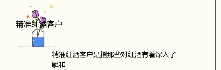 精准红酒客户是指那些对红酒有着深入了解和热爱的消费者。他们不仅仅是为了喝酒而买红酒,更是为了品尝红酒的味道、了解红酒的产地、酿造工艺和历史背景。