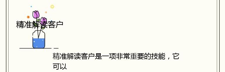 精准解读客户是一项非常重要的技能,它可以帮助企业更好地了解客户的需求和想法,从而更好地满足客户的需求,提高客户满意度,增加企业的竞争力。