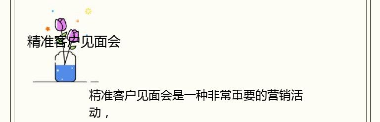 总之,精准客户见面会是一种非常有效的营销方式,可以帮助企业更好地了解客户需求,提高销售业绩。企业需要精心策划、认真执行,才能取得良好的效果。