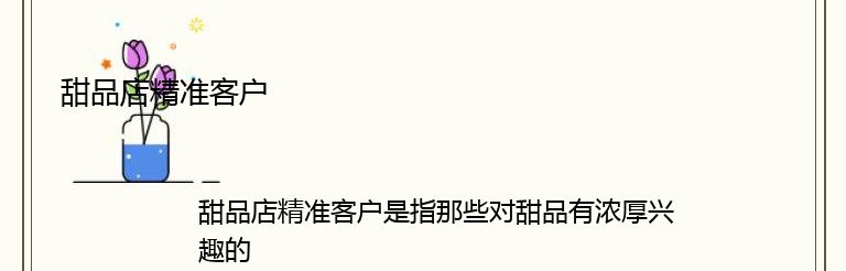 总之,甜品店需要精准客户的支持和认可,而吸引精准客户的关键在于提供高品质的甜品和优质的服务。只有这样,甜品店才能赢得精准客户的信任和口碑,从而获得更多的客户和业绩。