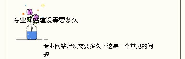 专业网站建设需要多久?这是一个常见的问题,但答案并不是那么简单。建设一个专业的网站需要考虑很多因素,包括网站的规模、功能、设计、内容等等。因此,建设一个网站需要的时间也会因此而异。