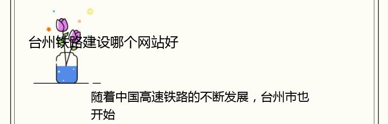 总之,台州铁路建设哪个网站好,需要根据自己的需求和关注点来选择。如果只是想了解台州铁路建设的最新进展和规划,可以关注台州市**官网;如果想了解全国范围内的铁路建设情况,可以关注中国铁路总公司的官方网站;如果想深入了解铁路建设领域的专业知识,可以关注一些专业的铁路建设网站。