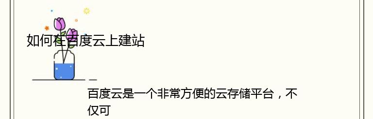 百度云是一个非常方便的云存储平台,不仅可以存储文件,还可以用来建立自己的网站。下面是如何在百度云上建站的步骤: