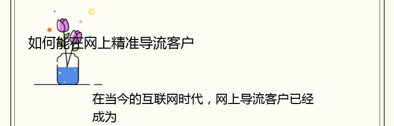 在当今的互联网时代,网上导流客户已经成为了许多企业获取客户的重要途径。但是,如何能够在网上精准导流客户呢?以下是一些实用的方法: