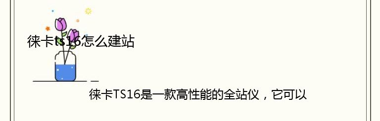 徕卡TS16是一款高性能的全站仪,它可以帮助用户快速、准确地进行测量和建站。如果您想使用徕卡TS16进行建站,以下是一些步骤和注意事项: