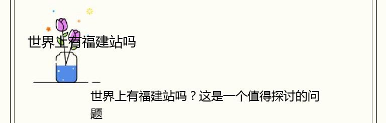 世界上有福建站吗?这是一个值得探讨的问题。福建是中国的一个省份,拥有着丰富的历史和文化。福建的经济也十分发达,是中国的重要经济中心之一。因此,福建站在中国的交通网络中也占有着重要的地位。