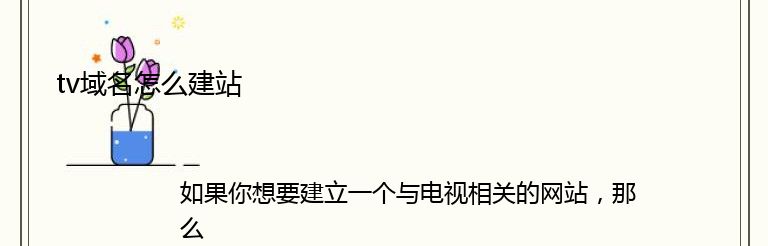 总之,建立一个.tv域名的网站并不难,只需要遵循以上步骤,选择好主机服务商、注册.tv域名、选择适合你网站主题的网站建设平台、设计和开发你的网站,最后将其发布到互联网上即可。