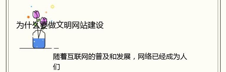 随着互联网的普及和发展,网络已经成为人们获取信息、交流思想的重要渠道。然而,网络上也存在着大量的不良信息和不文明行为,给人们的生活和工作带来了很多负面影响。因此,建设文明网站已经成为了当今互联网发展的必然趋势。