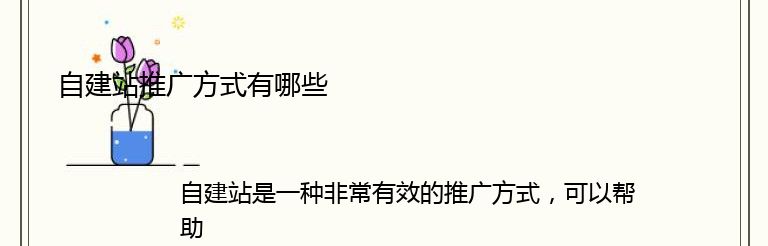 总之,自建站推广方式多种多样,需要根据自身情况选择合适的方式,并不断优化和调整,才能取得最好的效果。