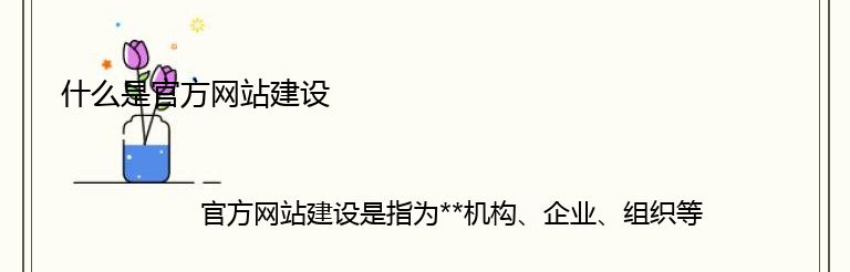 官方网站建设是指为**机构、企业、组织等建立一个官方的网站,以便于向公众传达信息、展示形象、提供服务等。官方网站建设的目的是为了提高公众对该机构的认知度和信任度,同时也方便公众获取相关信息和服务。