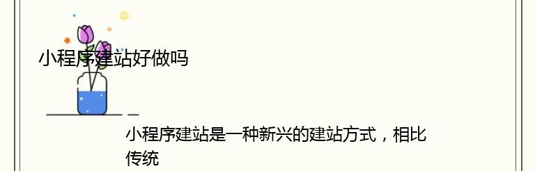 当然,小程序建站也存在一些问题,比如小程序的功能和界面受到限制,无法实现一些复杂的功能和设计。而且小程序建站需要一定的技术和设计能力,如果没有相关的知识和经验,可能会遇到一些困难。