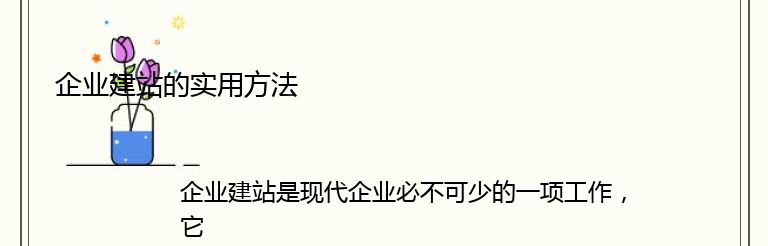 企业建站是现代企业必不可少的一项工作,它不仅可以提升企业形象,还可以为企业带来更多的商机。但是,如何建立一个实用的企业网站呢?以下是一些实用的方法: