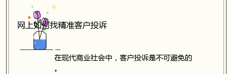 总之,找到精准的客户投诉是企业解决问题、提高客户满意度的关键。企业可以通过社交媒体平台、客户服务中心、客户反馈系统和市场调研等方式,寻找客户投诉,并及时采取措施解决问题,提高客户满意度和企业形象。