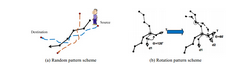 在轨迹发布场景中,轨迹数据发布之前,由LBS服务器产生一些假轨迹,使得攻击者看到的轨迹数据增多,加大了识别真实轨迹的难度。You等人提出两种假轨迹产生方法:随机法,由LBS服务器随机生成一条连接起点到终点、连续运行且运行模式一致的假轨迹,如图 4(a)所示;旋转法,以移动用户的真实轨迹为基础,以真实轨迹中的某些采样点为轴点进行旋转,旋转后的轨迹为生成的假轨迹,如图4(b)所示。旋转点的选择和旋转角度的确定需要和信息扭曲度进行关联权衡。
