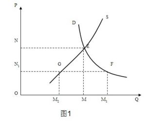 根据经济学原理,参看图1所示,供给曲线S与需求曲线D的交点E称为均衡点。在均衡点上,供给与需求处于均衡态。图1上均衡点E所对应的ON称为均衡价格,E点所对应的需求量或供给量OM称为均衡数量。