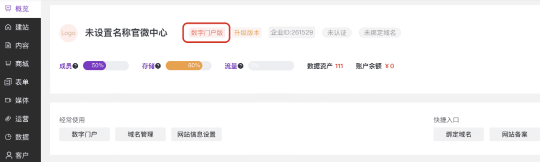 购买co.ltd域名用户,附带的系统版本将统一显示为「数字门户版」