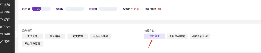 除了在OEM代理下直接进行域名绑定,升级后,OEM下的用户也可以在首页进入绑定域名的界面,直接在官微中心进行绑定/解绑了。