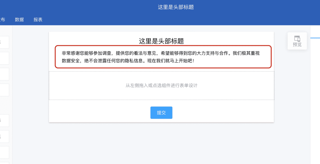 如下图右侧红框内表单界面中的简介/摘要内容,将会出现在列表中表单标题的下方。过于长的简介,鼠标悬浮即可展示全部。