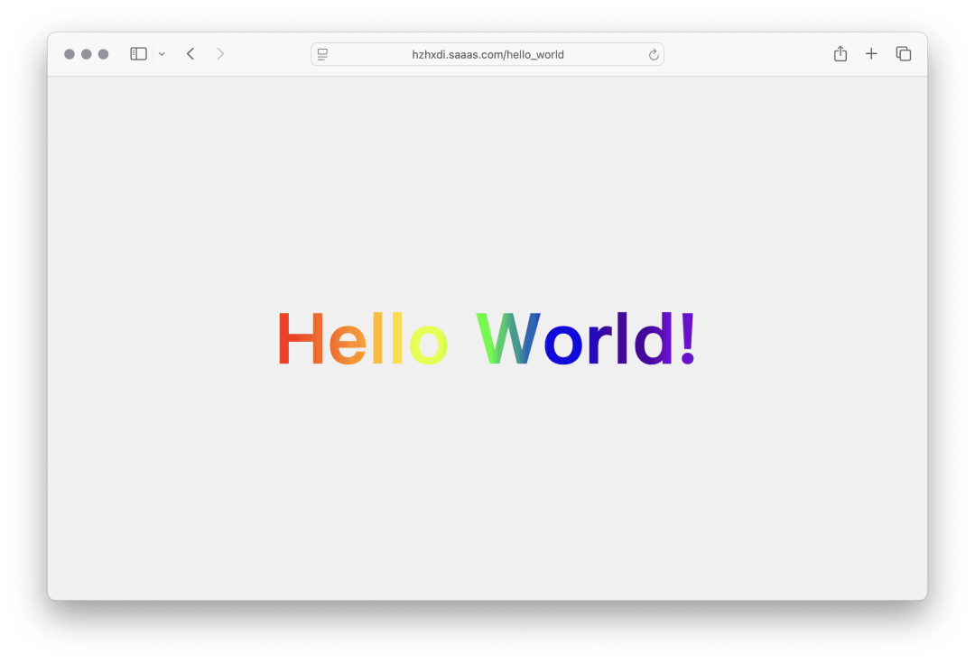 比如上图的示例中,我们编写了一个彩虹渐变的“Hello World!” 页面,发布后效果如下: