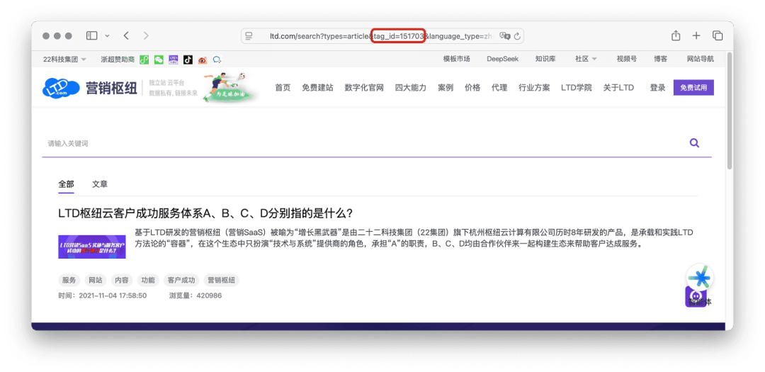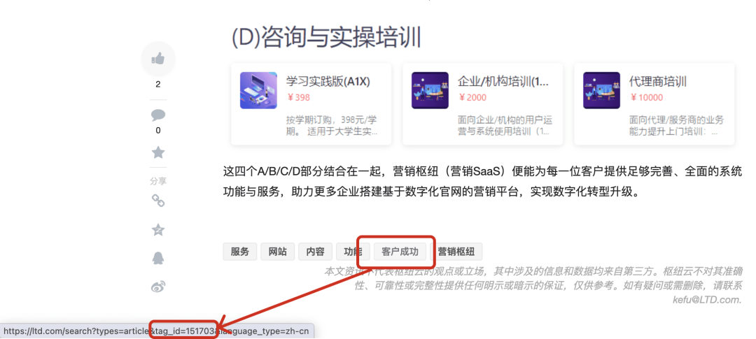添加完成标签,将在文章底部进行展示,下图中可以看到,这里输出的标签所指向的链接,已经从搜索结果页关键字更换为标签ID,这个页面将带来更快的访问速度。