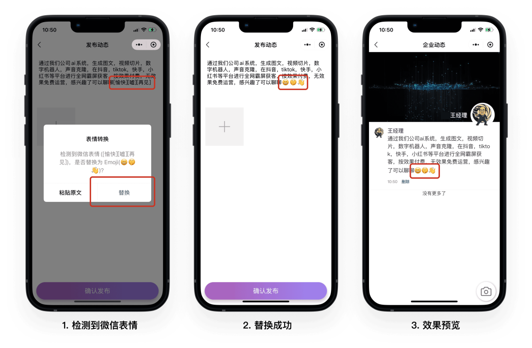 本次升级我们为官微名片发动态时,对这种类型的文字做了优化。