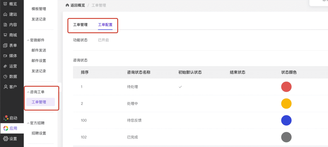 本次升级我们将官微中心 - 应用中"官微咨询"栏目的名称,统一为更加直观且通用的"工单"。