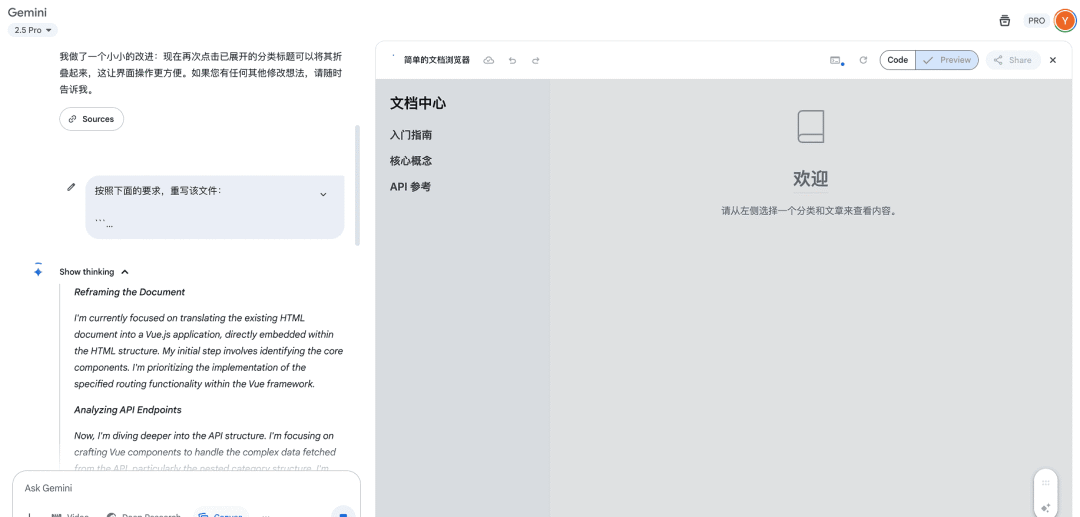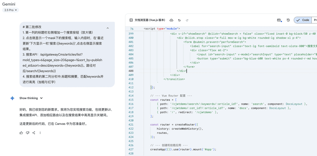 比如我们找到一个简单的页面,在下图中让Gemini帮我们集成营销枢纽CMS的API,以及做需要的调整
