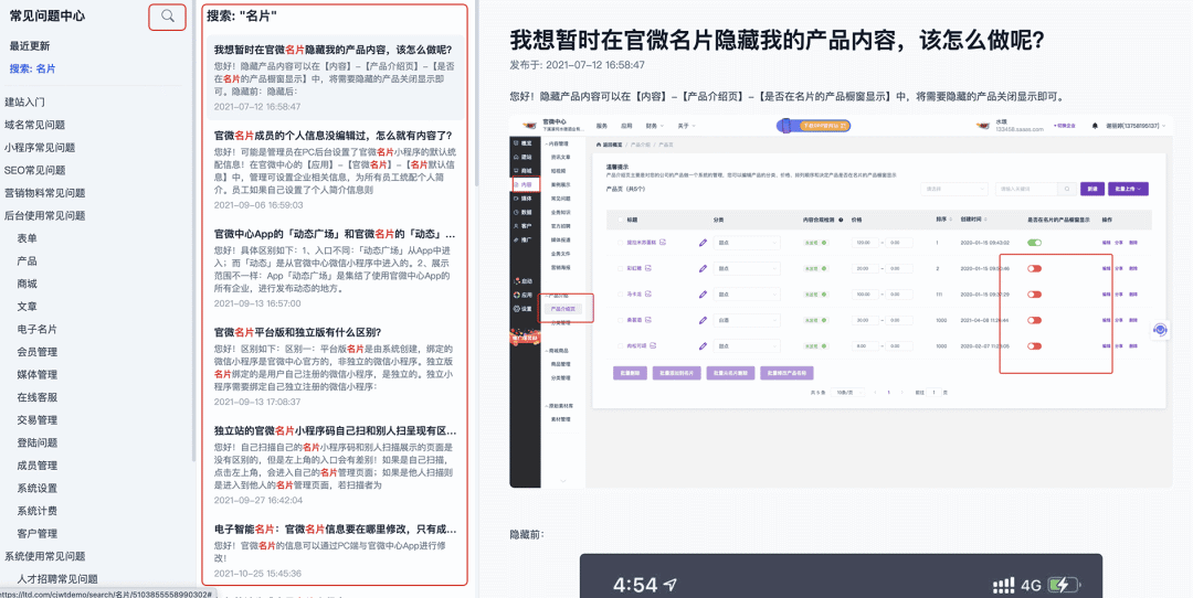 另一个例子是使用官微中心中的常见问题类型的内容,使用类似的方式,实现一个简洁且功能完整的文档中心页面。