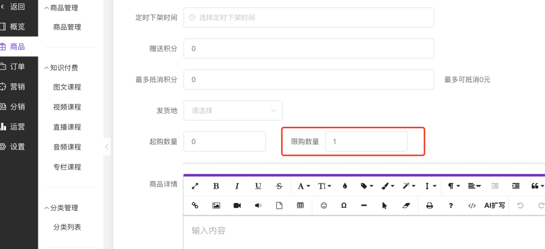 升级前,商品限购只针对单个订单的情况,无法对会员购买进行限购。