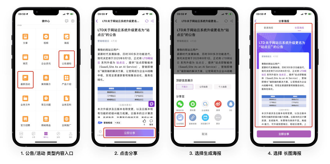 2) 公告/活动类型的内容,分享为长图海报
