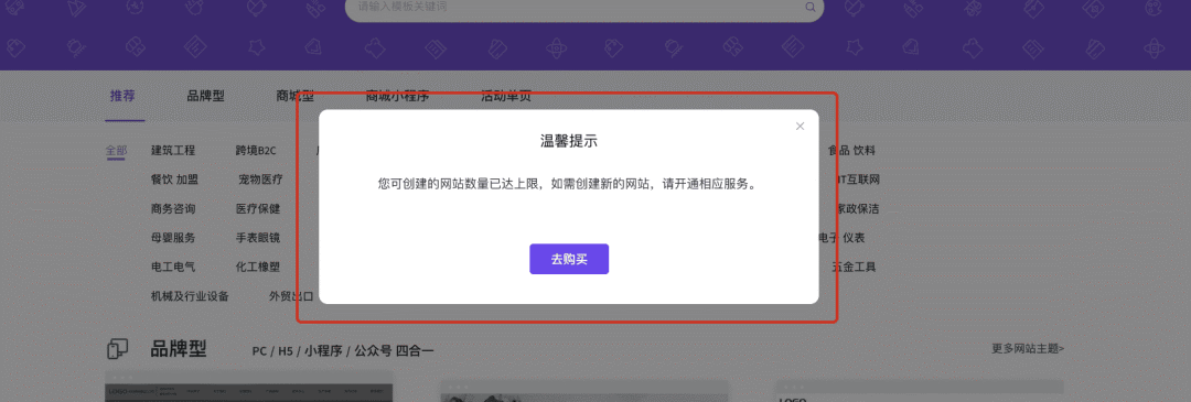 修复当直接从 wei.ltd.com/muban 中浏览模板并选择 立即使用 时,部分情况下要求创建新的网站的问题。