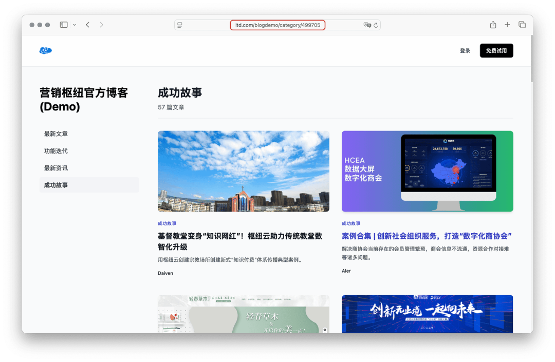 单击立即开通后,即可通过 域名/blog 这个路径进行访问了。默认将读取文章类型内容下面的所有内容。