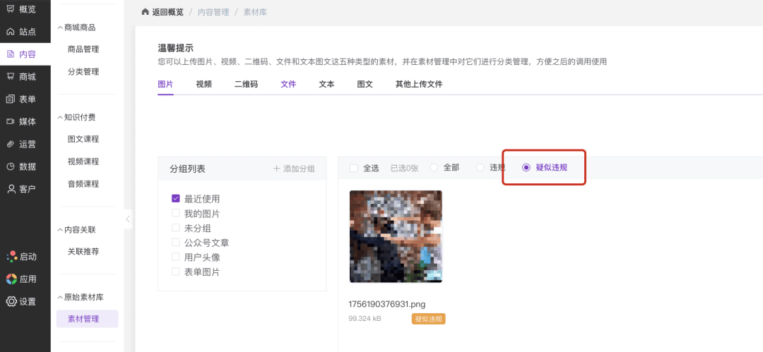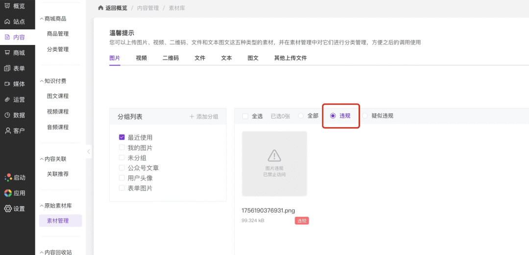 本次升级后,官微名片小程序中上传的头像、图片等资源,将会进入站点后台的素材库。在升级前,部分资源没有进入素材库进行统一的空间计算与管理。